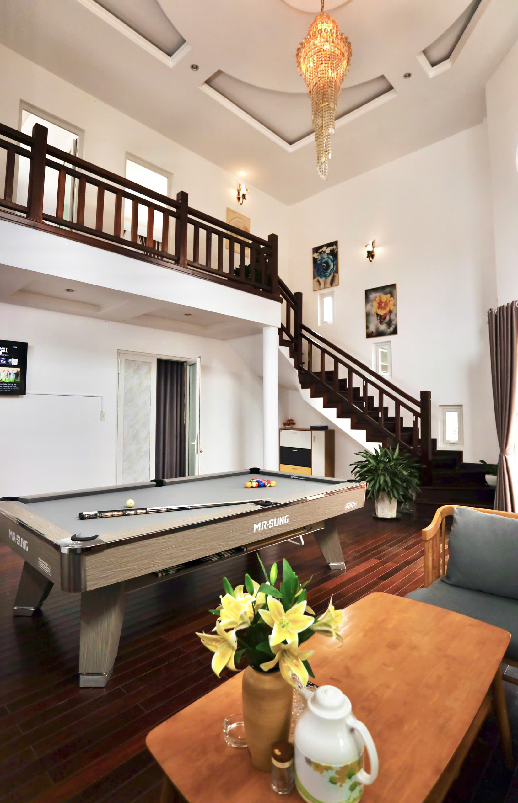 – Phòng khách được trang bị bàn bida lỗ