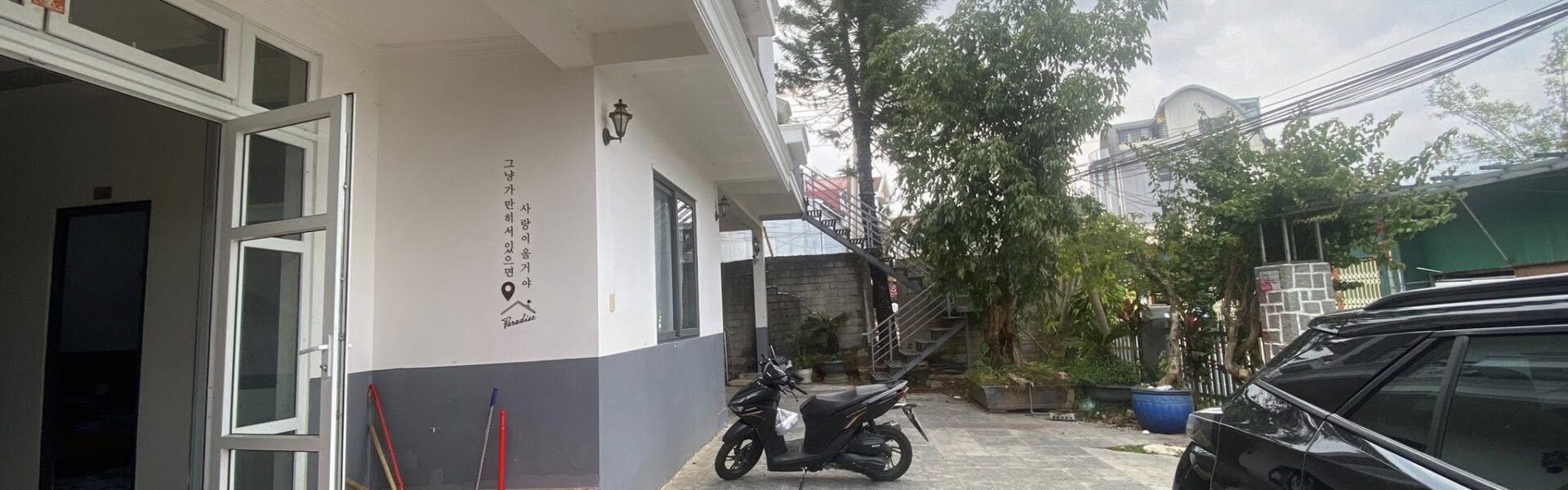 – Sân ô tô rộng rãi, có nhà đậu xe máy riêng, kinh doanh tự do